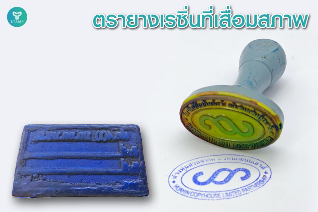เนื่องจากตรายางแบบยางพาราไม่สามารถผลิตในที่สถานที่ปิดอย่างในห้างสรรพสินค้าได้ จึงมีการนำเอายางเรซิ่นเข้ามาใช้ทดแทนเพื่อเป็นตัวเลือกให้กับผู้บริโภคอีกทางหนึ่งที่ต้องการใช้งานแบบเร่งด่วนและใช้งานแค่ชั่วคราว เพราะยางแบบเรซิ่นหลังใช้งานได้ประมาณ 3-6 เดือน ก็จะเสื่อมสภาพ ละลาย ตัวอักษรเลือน ขาด ปั๊มได้ไม่ชัด ไม่ทนทานเหมือนกับยางพารา