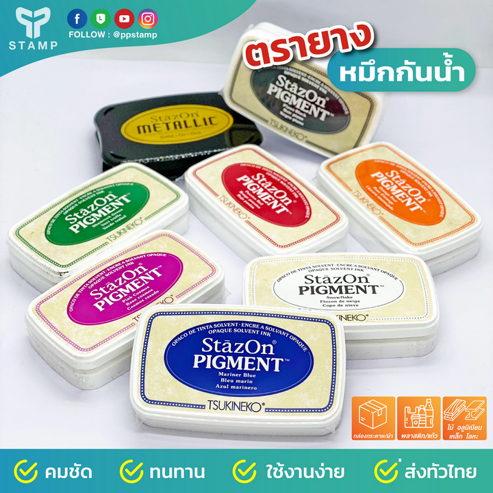 หมึกกันน้ำ หรือ Pigment Ink เป็นตัวเลือกที่ดีสำหรับผู้ที่ต้องการงานพิมพ์ที่มีคุณภาพสูง ทนต่อน้ำและแสงแดด หากคุณต้องการงานปั๊มที่สวยงาม คมชัดและไม่ซีดจาง หมึกกันน้ำคือคำตอบ